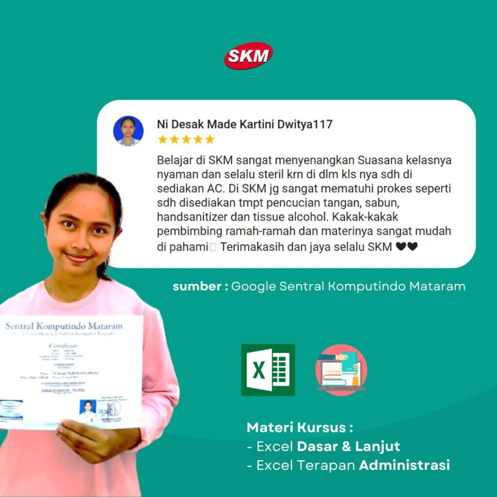 Peserta akan dibimbing satu persatu oleh Instruktur yang Ramah dan Berpengalaman, peserta juga akan diberikan Fasilitas masing-masing 1 Komputer untuk 1 peserta di Lab Komputer SKM