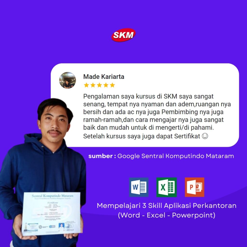 Peserta akan dibimbing satu persatu oleh Instruktur yang Ramah dan Berpengalaman, peserta juga akan diberikan Fasilitas masing-masing 1 Komputer untuk 1 peserta di Lab Komputer SKM